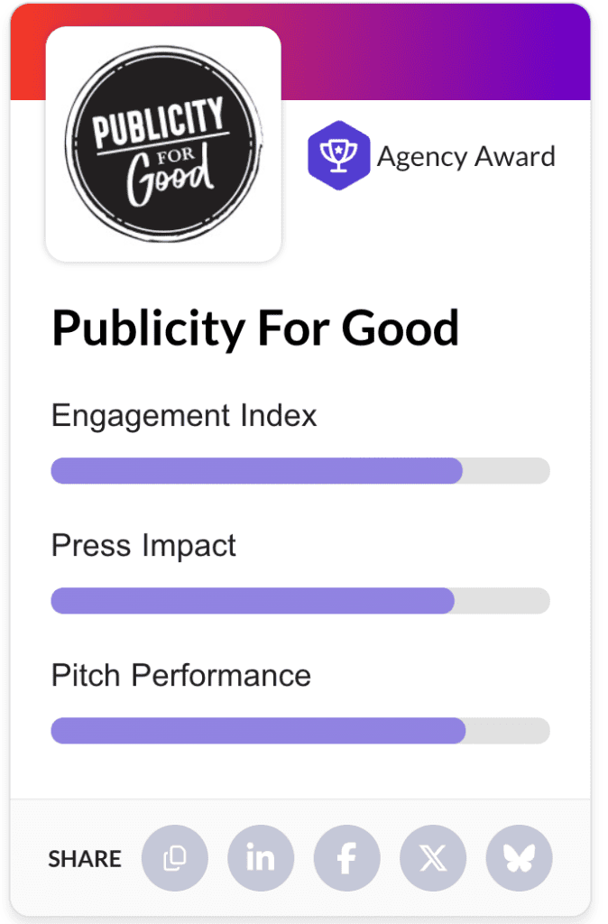 This recognition is a testament to the PFG team’s commitment to delivering quality interactions for every journalist they engage.  “We believe that PR is a force for good, and being recognized for the integrity of our media relations validates that mission,” said Heather Holmes, founder of Publicity For Good.