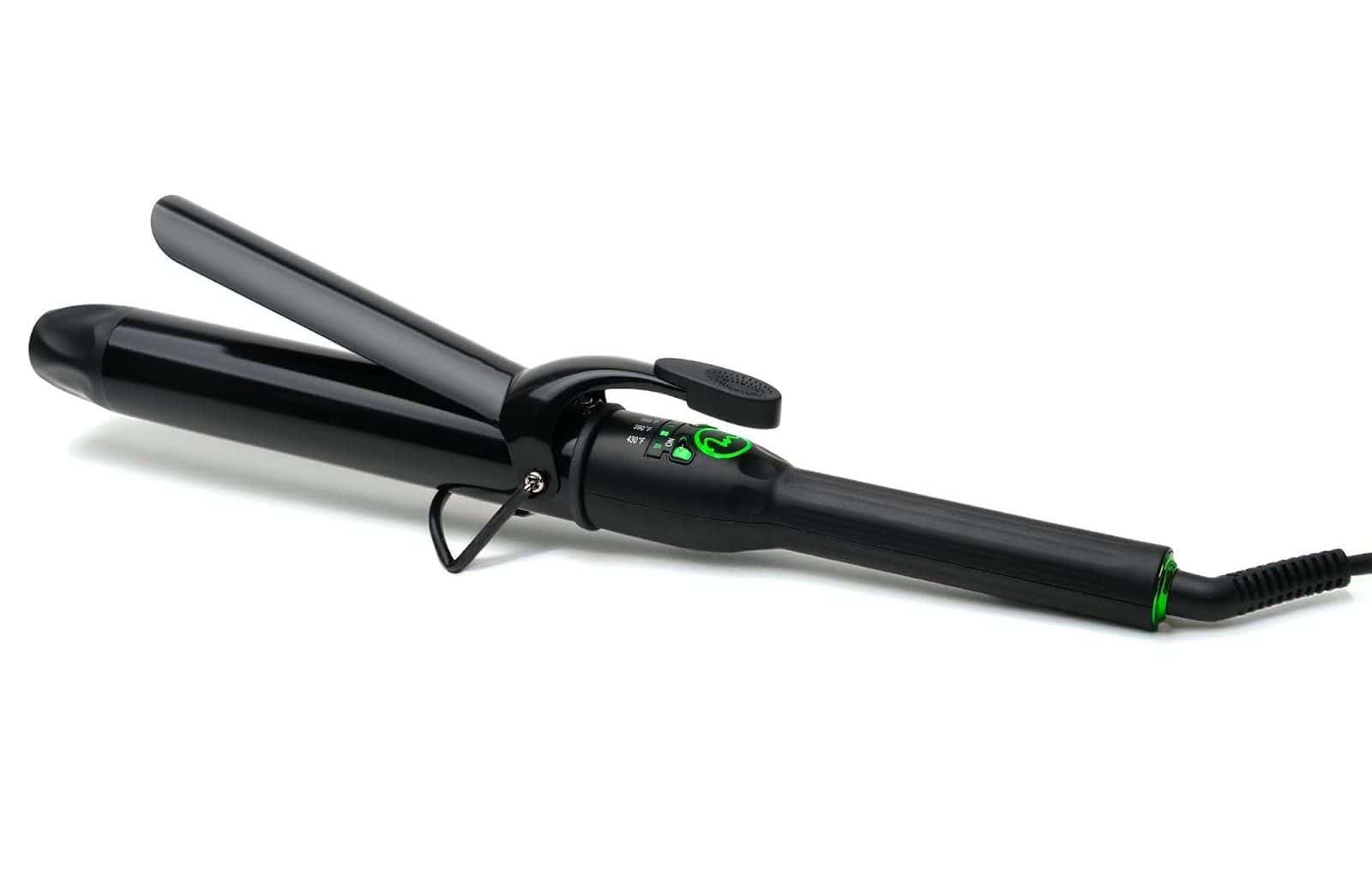 The curling iron combines ionic, ceramic and tourmaline barrel technology with far infrared heat to preserve the hair cuticle while locking in moisture. The adjustable temperature ranges from 270 to 430 degrees Fahrenheit, accommodating all hair types.